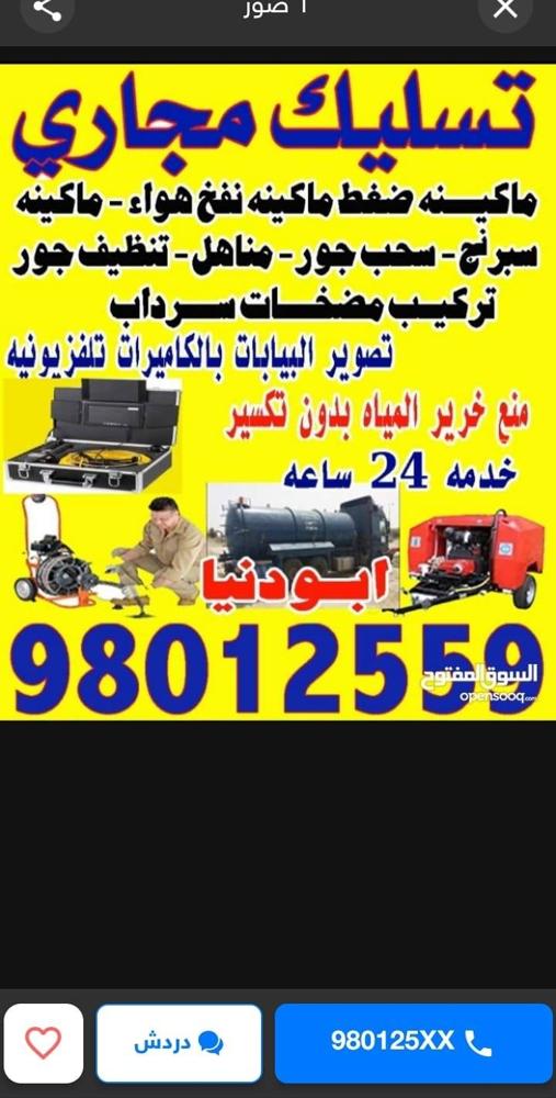 تسليك مجارى تصوير كاميرا تلفزيونية / مكاين ضغط / مكاين السبرنج تنظيف جوره السرداب/ كل ماهو خاص بشغل الصحى بارخص سعر بالسوق متواجدون بكل مناطق الكويت دق وابشر بالخير & نحن بخدمتكم على مدار الساعه & ابو دنيا