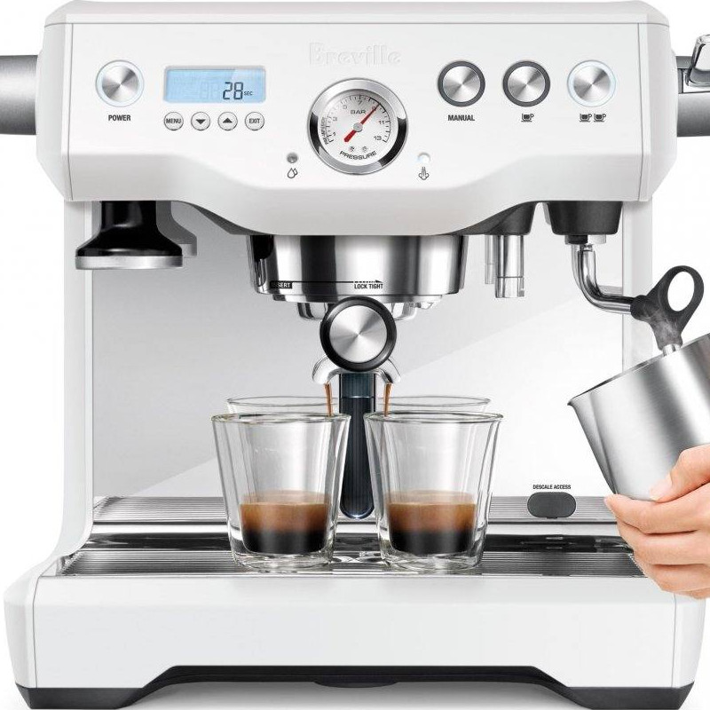 بريڤل دول بويلر الاحترافيه لون حصري وجديد لون ملح البحر Sea salt 🤍 وايضا اللون الستيل الاصلي متوفر جديده بالكرتون افضل ماكينه للمشاريع التجارية والفود ترك والكترينج ) سخانین دبل بویلر ) عندك مشروع بريفل دبل بويلر سعر واداء قوي ماكينة قهوة اسبريسو بريفيل دول بويلر breville dual boiler تعتبر احدى افضل انواع ماكينات الاسبريسو الاحترافية التي تمتلك طريقة تصميم عصرية حديثة وانيقة عالية الجودة مزودة بالعديد من الخصائص والتقنيات المبتكرة لضمان توفير سرعة وسهولة اكبر في التعامل والاستخدام يعطيك مذاق مثالي يغنيك عن الذهاب الى المقاهي والكفيهات وتوفير الاموال والوقت مميزات آلة بريفيل دول بويلر ماكينة قهوة اسبرسو : تمتلك ماكينة اسبريسو بريفيل دبل بويلر غلاية مزدوجة مصنوع من الفولاذ المقاوم للصدأ تعمل بفرق جهد كهربائي يصل مابين 220 فولت وقوة 1700 واط. تقدم بريفل دول بويلر طريقة استخدام سهلة بواسطة ازرار وشاشة Icd تفصيلية مزودة باضاءة خلفية توفر التحكم ومشاهدة 5 اعدادات مختلفة للحجم والحرارة والتشغيل التلقائي وضبط الساعة وقت الاستخراج وكذلك التنظيف بصورة قابلة للضبط واعادة البرمجة وعلى الجا