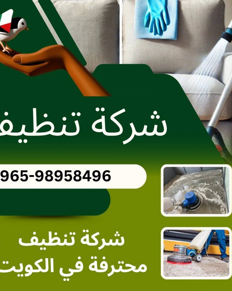 هل تفكر في تنظيف منزلك بعمق؟ مع المواد الكيميائية المتقدمة، والآلات المستوردة، والمنظفين المهرة، نقدم أفضل خدمات التنظيف في الكويت. تواصل معنا اليوم لتنظيف منزلك أو مكتبك أو أي مساحة تجارية بشكل عميق. تشمل خدماتنا: 1. تنظيف عميق بالكامل للمنزل/المكتب 2. تنظيف الحمام العميق 3. تنظيف المطبخ العميق 4. تنظيف الأرائك العميق 5. تنظيف السجاد العميق احصل على الخدمة التي تحتاجها الآن