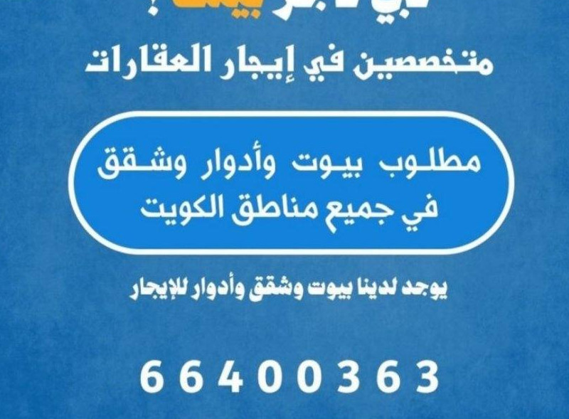 للبيع بيت في الرقة القطعه : 1 الموقع : شارع و سكة المساحة : 400 متر الارتداد : 20 متر الوصف : 3 ادوار الدور الارضي والأول سكن المالك + يوجد شقق مؤجرة المدخول : 1400 د.ك وثيقة حرة + شهادة الاوصاف جاهزة ( تحويل فوري ) السعر : 315 الف د.ك