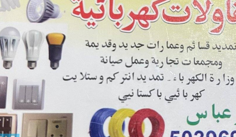 انا فني کهرباي ۏ مقاول تمديدات بلقات سبورت لاءيتات التماس ديبي بريكرات بيت جديدوقديم کل مقان کويت