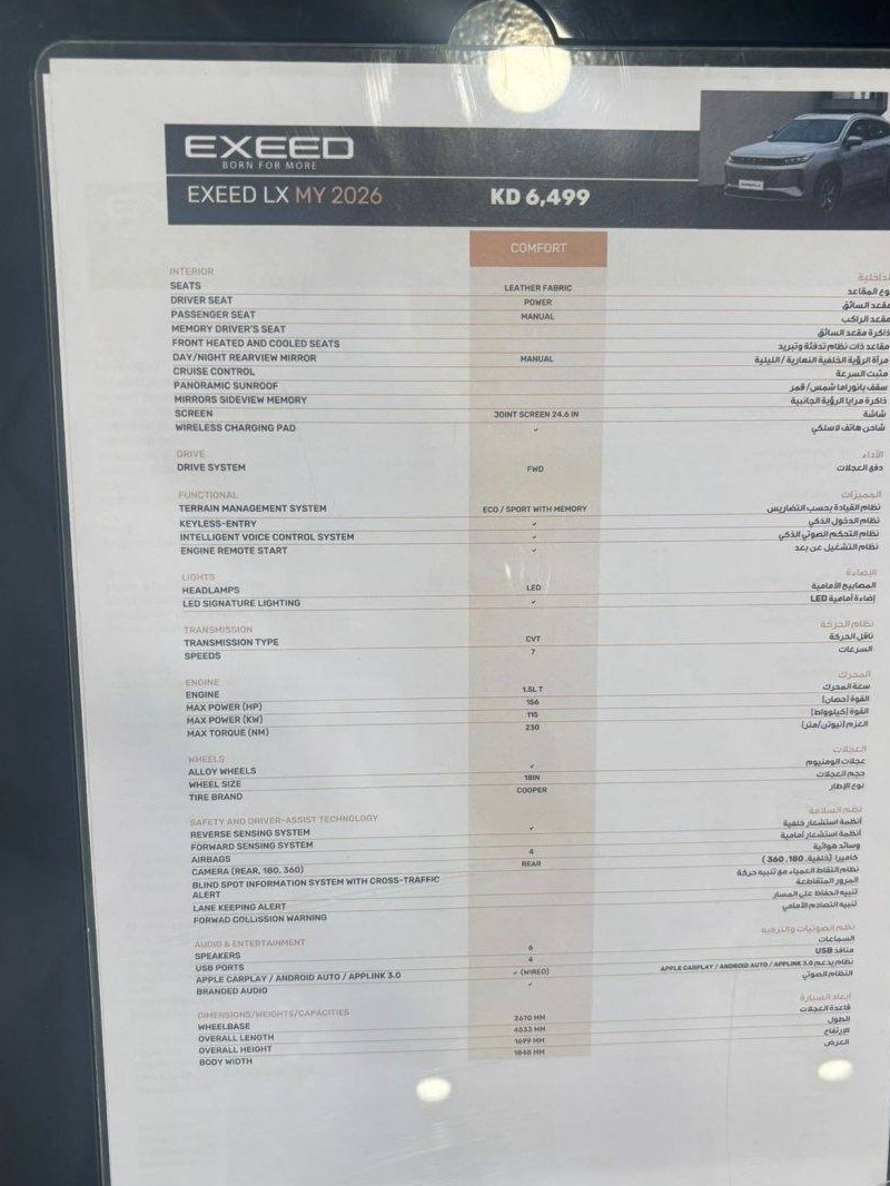 بيعة سريعة أصفار مديل ٢٠٢٦ للبيع أكسيد Lx230 اصفار وارد الغانم تحت الكفالة 7 سنوات او 200،000 ايهم يسبق «, تشغيل عن بعد ، بصمة دخول بصمة ، تشغيل شاشة نافقيشن ابل كار بلي ، تغيير الوان اضاءات المقصورة ، كاميرا عداد ديجتال حجم مكينه ١.٥ تيربو شرط الفحص بالكامل للعلم السعر بالوكالة 6500 دك في حال عدم الرد التواصل وتساب
