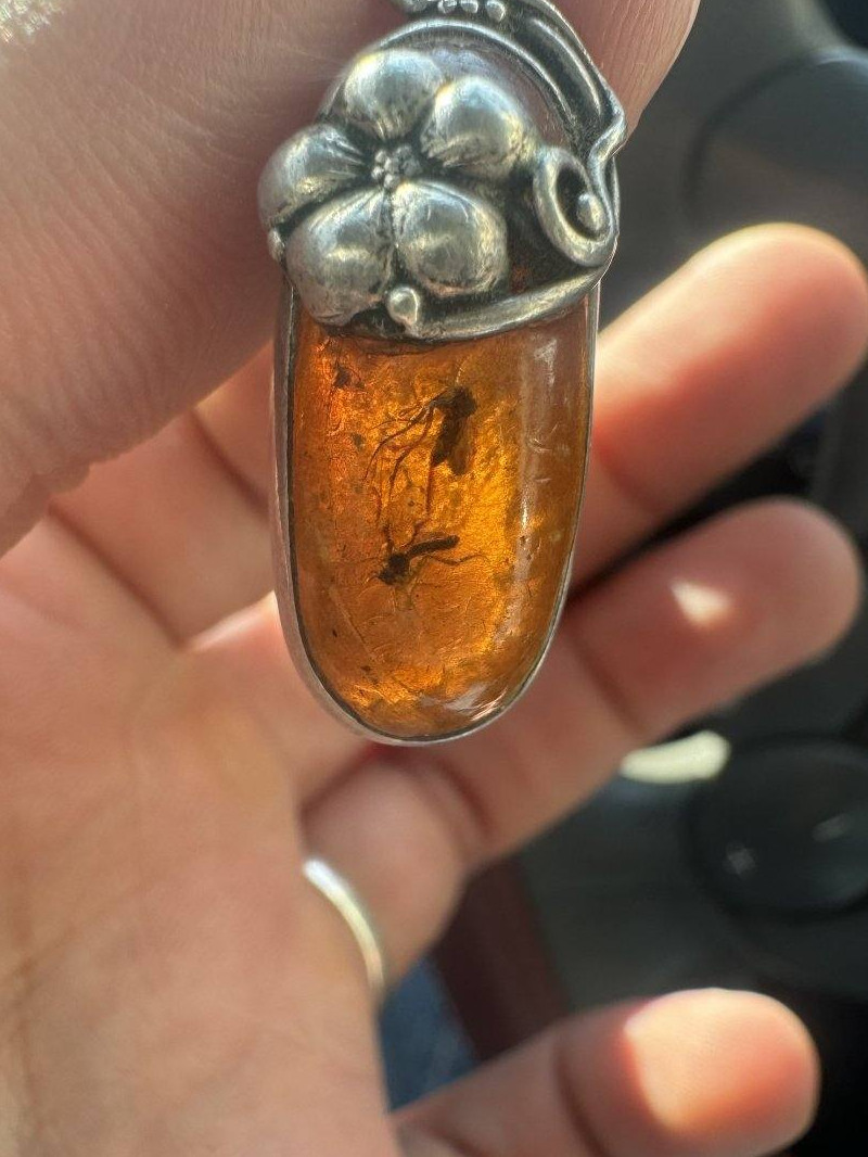للبيع قلادة كهرب قديم محشر ، قطعة جميلة واضحة بالصور