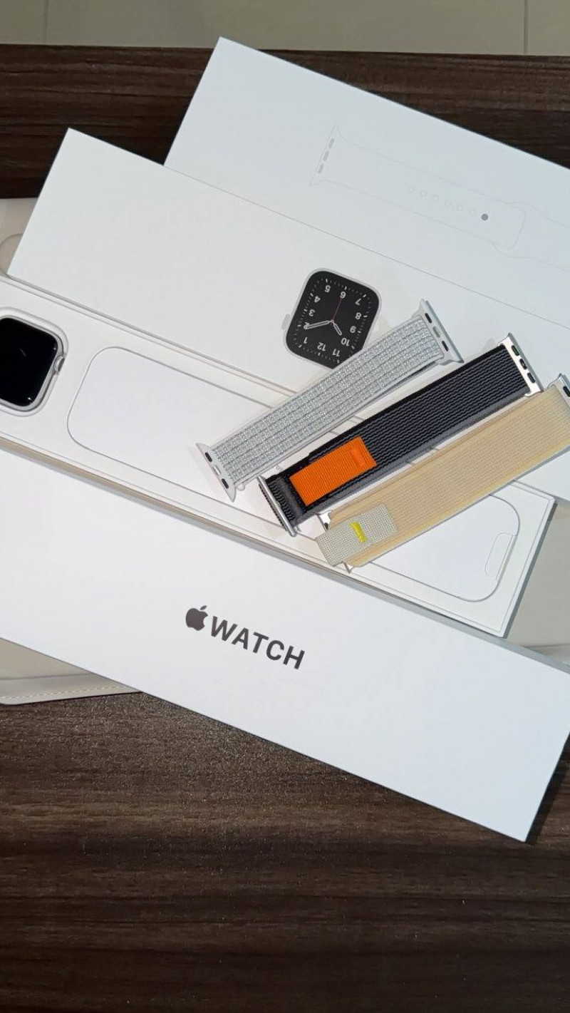 الموديل SE + GPS 40mm مستوى البطارية 100% الون سلڤر + سير رياضي جلد ابيض سعر الشراء 58.500 دينار يوجد فاتورة من هاتف 2000 ( بالاضافه معاها عدد 3 سيور الوان متعدده ) كل شيء واضح بالاعلان .