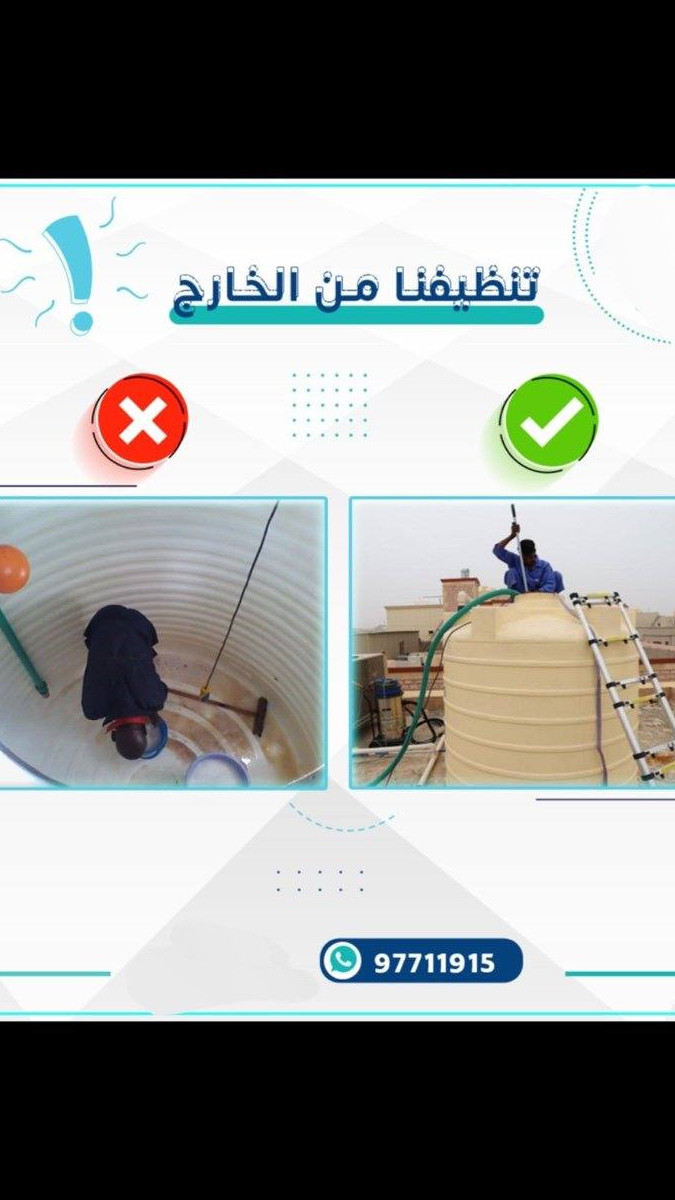 ☎️ لاتردد في تنظيف خزانك ✅ الشركة الاول في الكويت متخصصة في غسيل خزانات المياه بأحدث الادوات . ✅ التنظيف يتم من غير دخول العامل 👍🏻 . ✅ ازالة جميع الطحالب والرواسب الطينية . ✅ تبديل فلاتر أوروبية نسبة الفلترة 5 مايكرون . ✅ تبديل عوامات نحاس الأصلية . خدماتنا تغطي جميع مناطق الكويت 🇰🇼