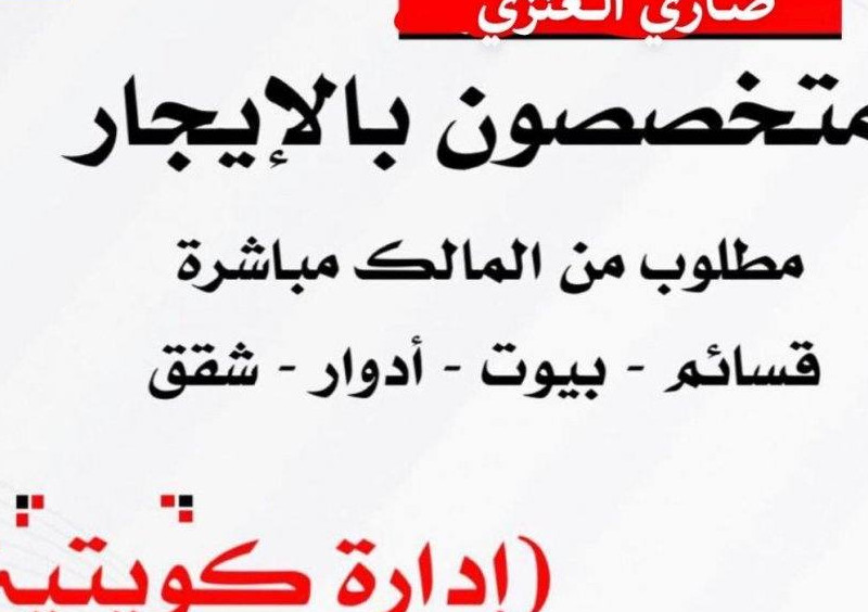 لايجار قسائم صناعية ومخاذن وارض فضاء وسراديب وسكن عمال للشركات والمؤسسات مساحات متنوعة تصلح جميع الانشطة التخذينيه والتصنيع *لايجار مخاذن في امغره تصلح جميع الانشطة التخذينيه مطافي وكهرباء وبلديه 5000م تقسم * للإيجار بالصليبيه مخاذن 1000م 2000م ارتفاع عالي ارضيه كونكريت معزول مع كهرباء وزاره وحراسه * للإيجار بالعارضيه قسيمه 4500م غذائي وتخزين و2000م سرداب للتخزين 1000م سرداب للتخزين * للإيجار بالصليبيه مخازن تجاريه 1000م مجهزه بالكامل علي اعلي مستوي قابله للتقسيم * للإيجار في ميناء عبدالله مخازن . ارتفاع عالي ، ارضيه كونكريت ، معزوله مع كهرباء ومطافي 1000م 1250م 2500م 5000م 10000م *للإيجار في الشويخ والري مخازن 500م و1000م 2000م 3500م * للإيجار بالمنطقة الحره مبني بالكامل يصلح اداره او اي نشاط تجاري * للإيجار في صبحان 3000م يقسم يصلح جميع الانشطه التخزينيه * للإيجار بالخويسات مخازن 1000م 1500م 2000م 2500م ارتفاع عالي ارضيه كونكريت معزول مع كهرباء مساحات مختلفه