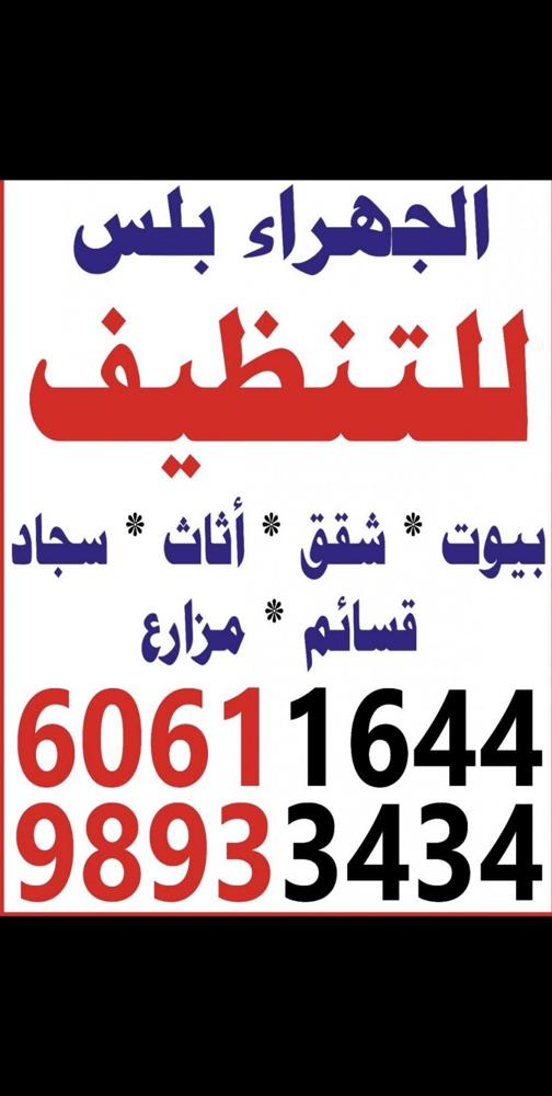 تنظيف عام المباني الجديدة المطلاع تنظيف المنازل وشقق سكنية وتجاريه الأرضيات ودورات المياه وتنظيف في مزارع العبدلي وجابر الاحمد وتنظيف جميع انواع سجاد وكنب وديوانيات