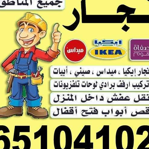 نجار تركيب اثاث ايكيا إضاءة ايكيا تركيب ارفف برادي طاولات استندات كراسي مكاتب تعليق لوحات براويز تليفزيونات تركيب غرف نوم محلي صيني ابيات تصليح جميع انواع الخشب قص ابواب فتح اقفال تبديل اقفال نقل عفش داخل منزل صيانة عامه جميع مناطق الكويت