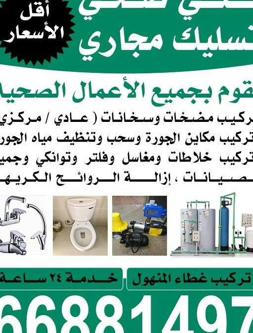 فني صحي تسليك مجاري بضغط المياه والهواء بجميع مناطق الكويت ابو سيف