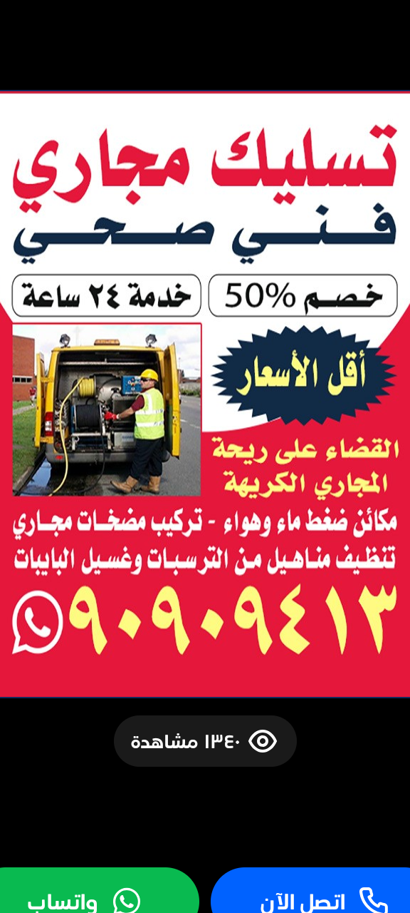 تسليك مجاري بأقل الاسعار خدمه 24 ساعه جميع مناطق الكويت تنظيف بواليع تنظيف مجاري تسليك يدوي وبالماكينه السبرنج والضغط مياه وهوا ازاله الروائح الكريهة تسليك مطابخ تسليك حمامات