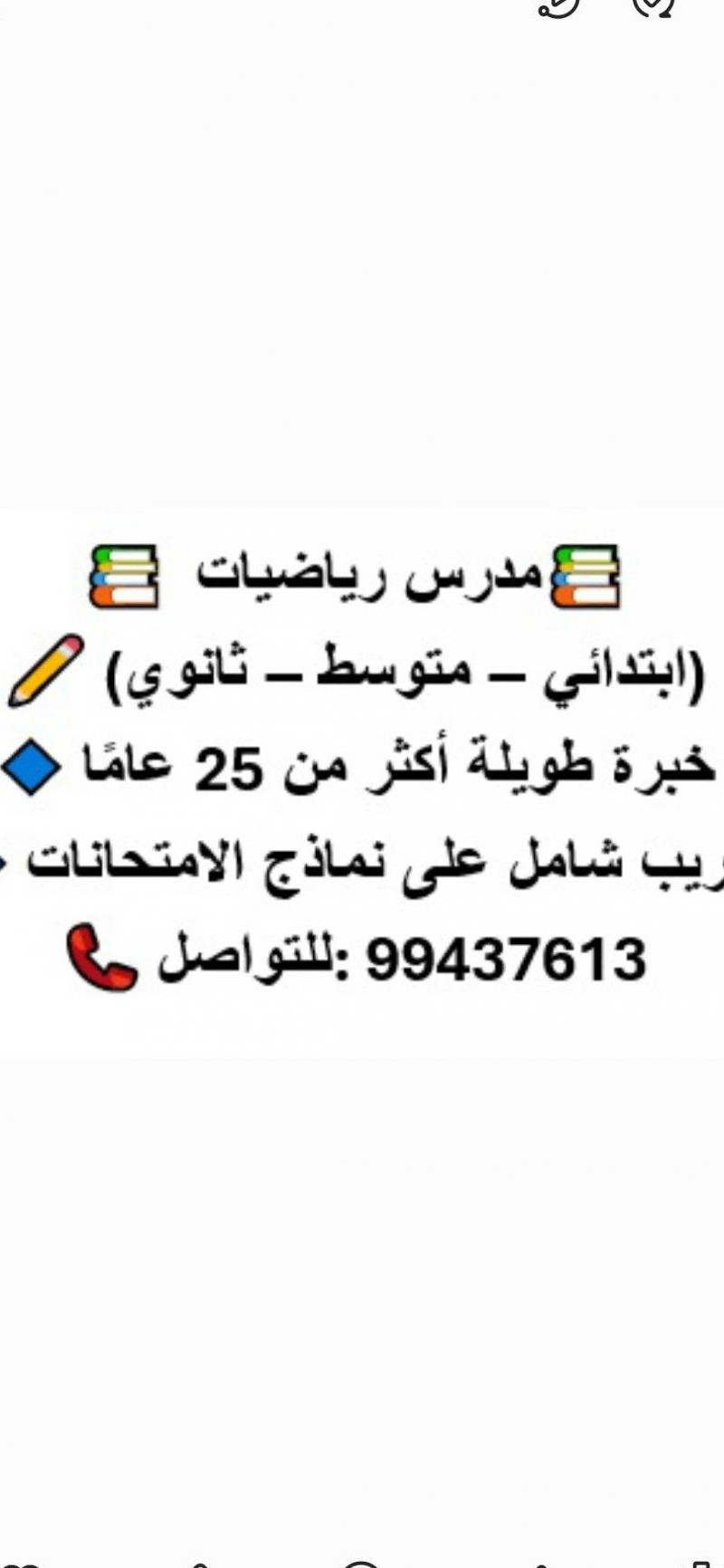 مدرس رياضيات جميع مراحل ابتدائي ومتوسط وثانوي خبره اكثر من ٢٥ عاما