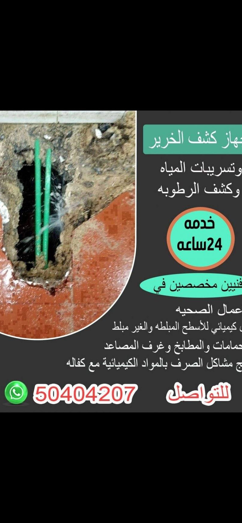 كشف الخرير بالجهاز وتسربات المياه فحص وتصليح الخرير مع الكفاله