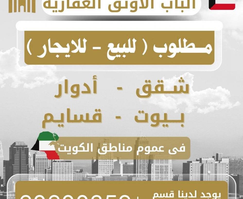 للبيع شقة في المهبوله مساحة ١٠٤ متر دور الرابع تتكون من ٣ غرف ٣ حمامات وغرفة خاادمة ومطبخ وصالة مؤجرة ٢٥٠ دينار حق عايلة اجار قديم وثيقة حرة بدون مخالفات مدخل ومخرج سهل جدااا السعر ٧٥ الف نهائي 🔺🔺🔺🔺 للبيع شقة في المهبولة مساحة ١٠٢ متر دور الخامس تتكون من ٣ غرف ٣ حمامات وغرفة خاادمة ومطبخ وصالة مؤجرة ٣٥٠ دينار وثيقة حرة بدون مخالفات السعر ٨٢ الف نهائي 🔺🔺🔺🔺 للبيع شقق بمجمع في المهبوله مساحة ١١٢ متر تتكون من ٣ غرف ٣ حمامات وغرفة خاادمة وصالة ومطبخ وامريكي وعمر البناء ٢٠١٧ خدمات المجمع // حمامات سباحة //نادي رجالي ونادي نسائي// والعاب اطفال وملاعب كرة قدم ويوجد سرداب للسيارات وكاميرات مراقبة وآمن وحارسة ويوجد شقق فيهم بلكونات .. وثايق حرة بدون مخالفات وتبدا الاسعار من ٨٦ الف 🔺🔺🔺🔺 للبيع شقق بمجمع في صباح السالم مساحة ١١٠ متر لما تسكن من قبل تتكون شقة من ٣ غرف ٣ حمامات وغرفة خاادمة ومطبخ وصالة خدمات المجمع // حمامات سباحة //نادي رجالي ونادي نسائي// وكاميرات مراقبة امن وحارسة وسرداب للسيارات وقريب من الخدمات جدااا وثايق حرة بدون مخالفات السعر ١٢٥ الف 🔺🔺🔺🔺 للبيع شقق في الفنطاس مساحة ١٠١ متر عمر البناء ٢٠٢٤ تتكون من ٣ غرف ٣ حمامات ومطبخ وصالة كاميرات وثايق حرة بدون مخالفات وتبدأ الاسعار من ١٠٣ الف 🔺🔺🔺🔺 ومطلوب من السادة الملاك شقق في جميع مناطق الكويت وفي حال عدم الرد يرجى التواصل على الواتس اب ولدينا شقق مساحات صغيرة واستثمارية وتبدا الاسعار من ٣٤ الف