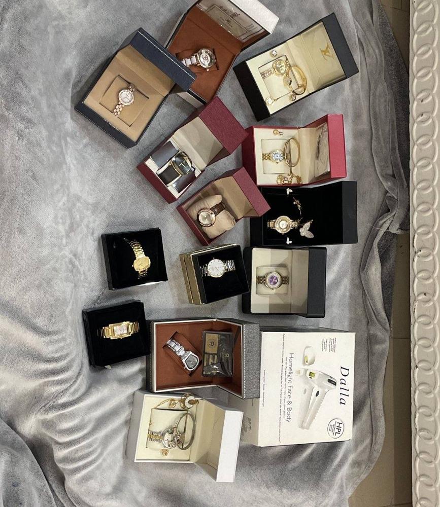 13 مجموعه من الساعات و الاطقم جديده و جهاز ليزر منزلي جديد
