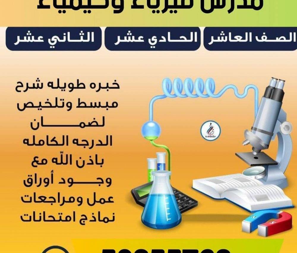 مدرس فيزياء وكيمياء10&11&12 علمي خبرة طويله بالكويت شرح مبسط أوراق عمل نماذج اختبارات الشرح بطريقه سهله مع اهم الاسئله المتوقعة لايخرج عنها الامتحان.