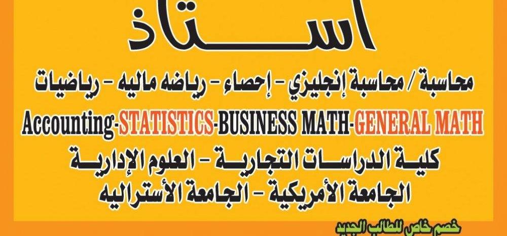 أستاذ محاسبه ١_محاسبه ٢ - محاسبة بنوك - إحصاء- رياضه ماليه - كلية الدراسات التجاريه -الجامعه الإستراليه - الجامعة الأمريكية- جامعة الكويت AUM