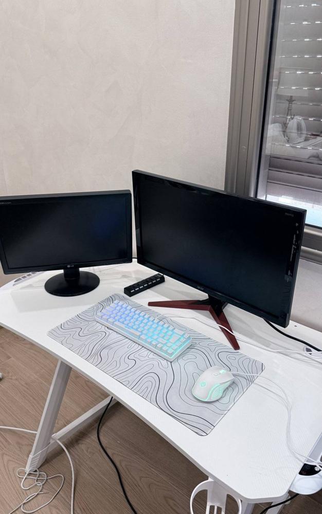بي سي مع شاشتين و كرسي للبيع ( في شاشه قديمه ) كرت ٥٠٦٠ معالج i5-4400k بي سي اموره طيبه و قوي يشغل كل شي