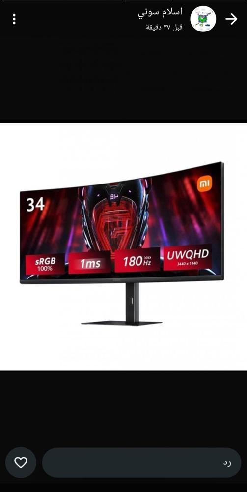 للبيع شاشه قيم 2k حجم الشاشه 34 بوصه ماركت شاومي