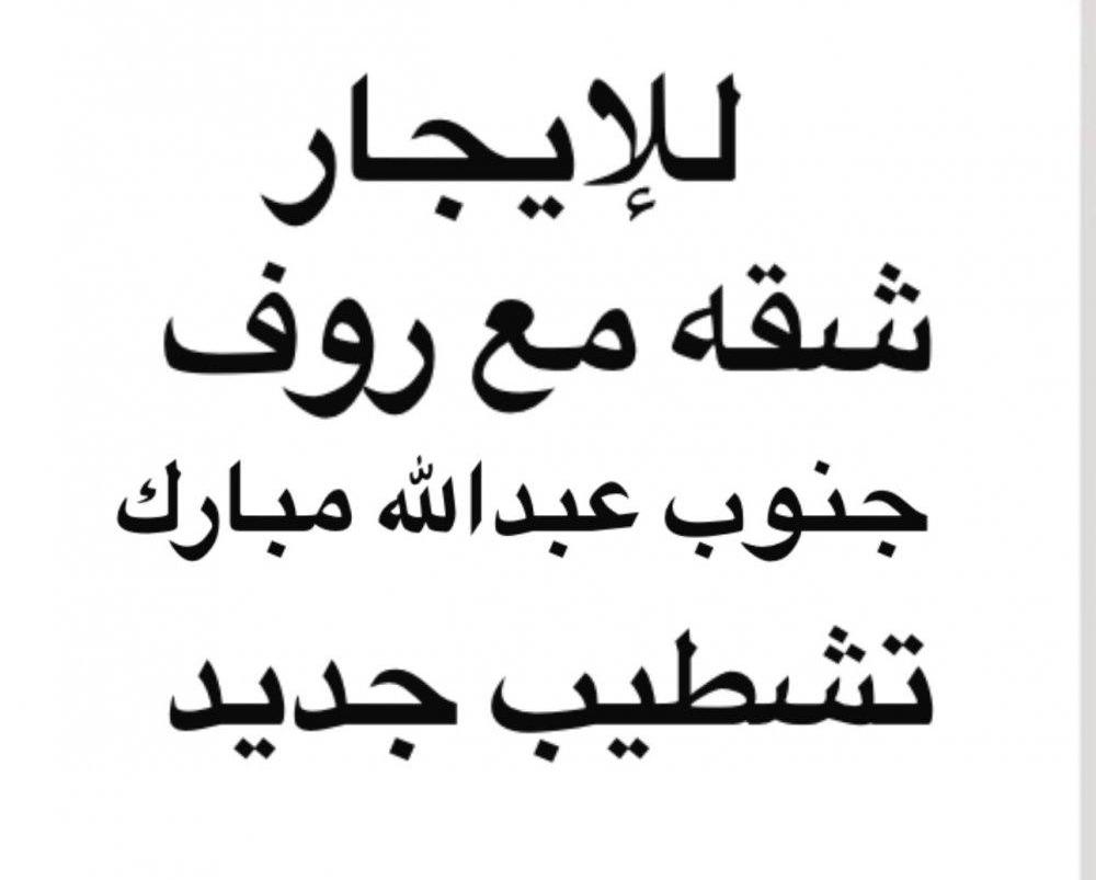 للإيجار شقه تشطيب جديد مع روف جنوب عبدالله مبارك ٣ غرف منهم وحده ماستر وصاله ومطبخ وغرفه خااادمه بحمامها و٣ حمامات ورف الايجار ٤٥٠ للإيجار شقه جنوب عبدالله مبارك تشطيب جديد ٣ غرف منهم وحده ماستر وصاله ومطبخ وغرفه خااادمه بحمامها و٣ حمامات الايجار ٣٥٠