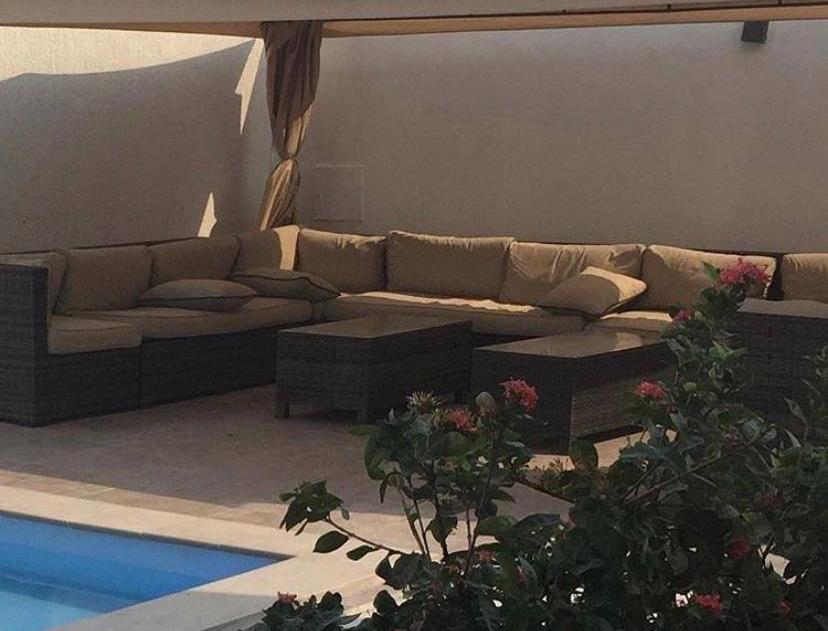 شاليه للاجار صف ثاني المرحلة الثانية بجانب المولات المساحة ٥١٥ متر دورين يمكن تقسيمة يوجد سلم يفصل الارضي عن الاول الارضي غرفة ماستر وغرفة خاد ومطبخ وصالة كبيرة وحمام سباحة كبير وحمام سباحة للاطفال وجلسة خارجية ومطبخ وحمامين وحمام للشغالة الدور الاول ٣ غرفة نوم وصالة صغيرة وغرفة للشغالة مع حمامها ومطبخ حمام سباحة للكبار حمام سباحة للصغار جلسة خارجية مؤثث طبعا كامل والجيران مامنهم اي ازعاج لا مانع اجار للشباب